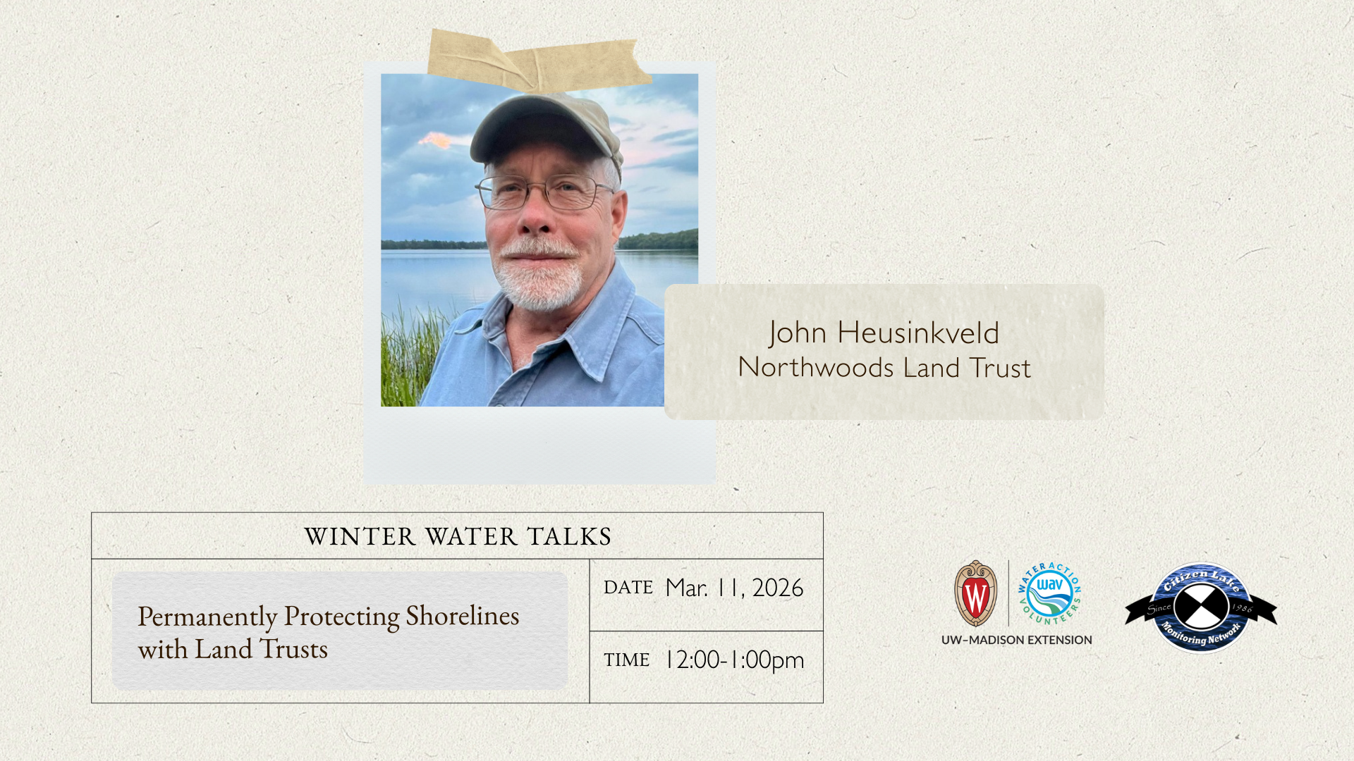 Join us this winter for our annual Winter Water Talks webinar series! Webinars are co-hosted by the Water Action Volunteers Program and the Citizen Lake Monitoring Network Program.